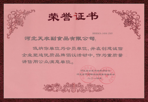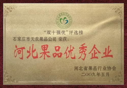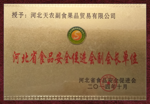 “源于自然,享受綠色”是公司服務于社會始終如一的追求目標。近年來公司先后榮獲“中華名優新特農產品先進單位”、“中國優質食品安全單位”、“中國果品協會理事單位”、“河北省果品流通協會最佳會員單位”稱號。